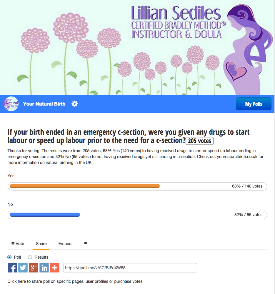 Last week’s Poll: “If your birth ended in an emergency c-section, were you given any drugs to start labour or speed up labour prior to the need for a c-section?”
